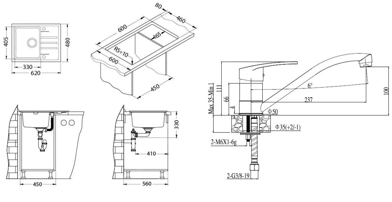 - afmetingen van de spoelbak 330 x 405 x 200 mm