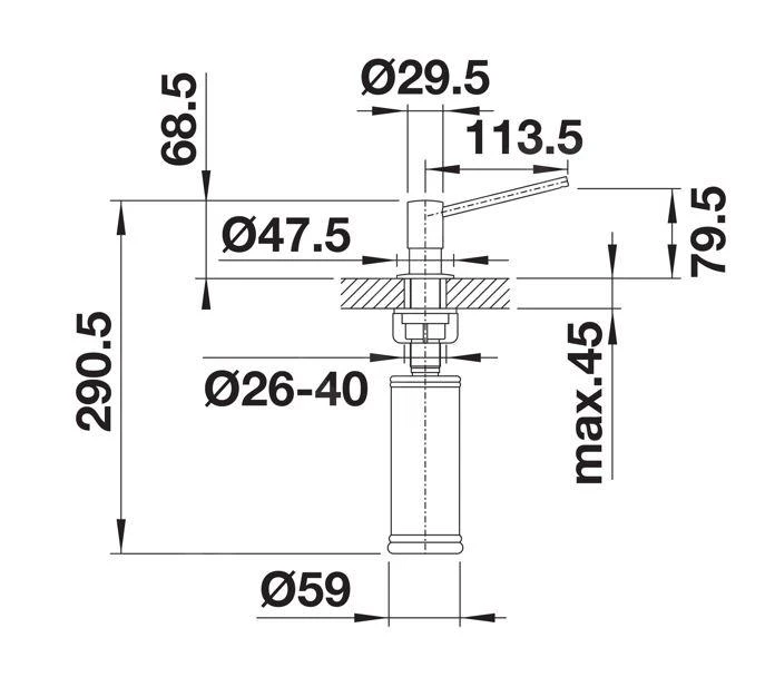 - oppervlak kan worden aangepast aan de gekozen kraan en bedieningsknop van de trekstang