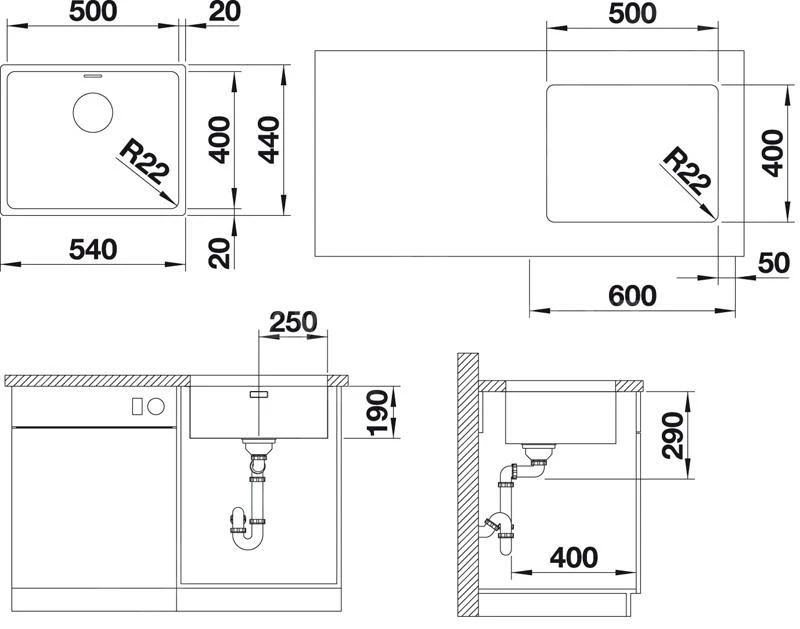 De gootsteen is voorzien van een stijlvolle C-overflow overloop, het onderhoudsvriendelijke BLANCO InFino afvoersysteem en een plaatsbesparende sifon. Het grote bakinhoud en de radii voor maximaal benutbare bodemoppervlakte zorgen voor optimale bewegingsvrijheid en genoeg ruimte voor alle klusjes.