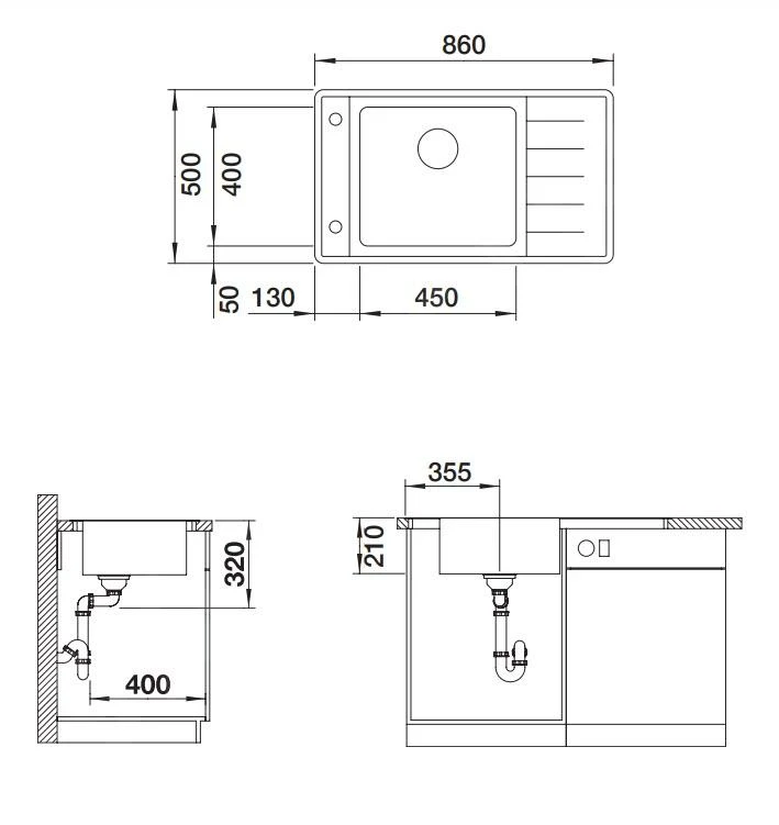 - totale afmetingen: 860 x 500 x 210 mm (LxBxD)