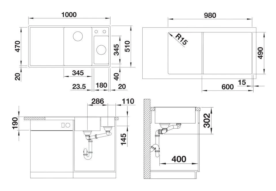Blanco Axia III 6 – Silgranit Spoelbak, 1000×510 Mm, Met Afvoerbediening En Toebehoren, InFino, Antraciet 524653