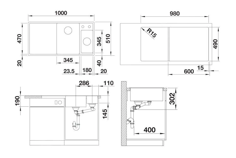 - afmetingen spoelbak 345 x 470 mm
