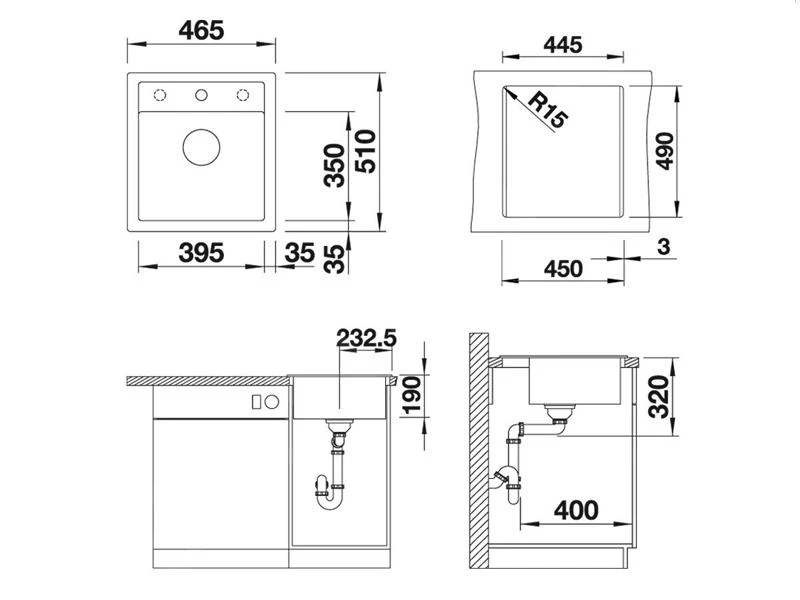 - afmetingen spoelbak 395 × 350 mm
