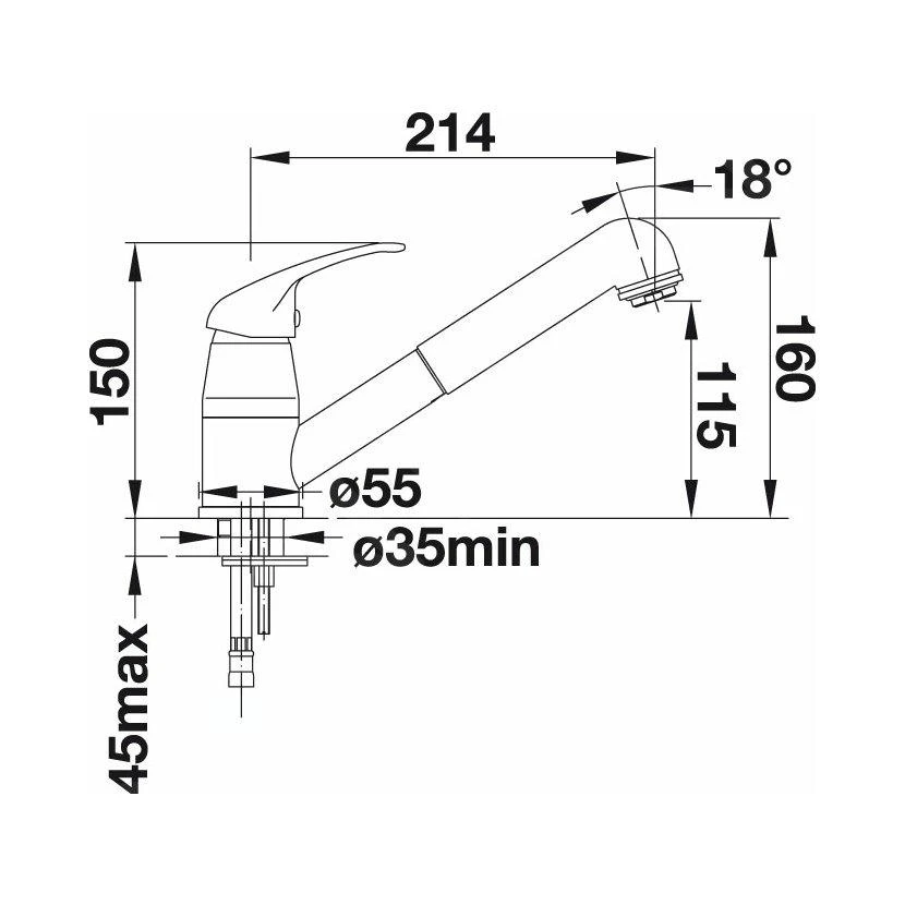 - draaibare uitloop, draaibereik 90°