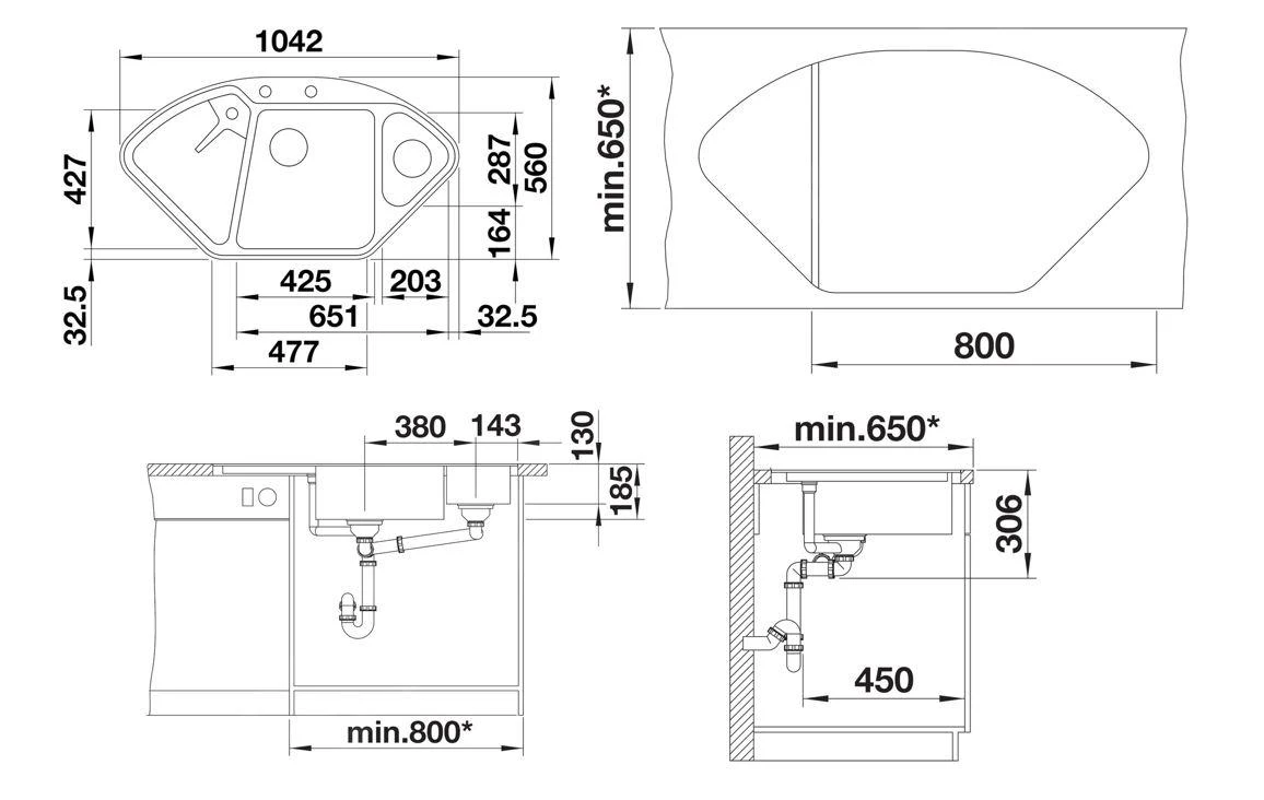- afmetingen spoelbak 425 x 427 mm