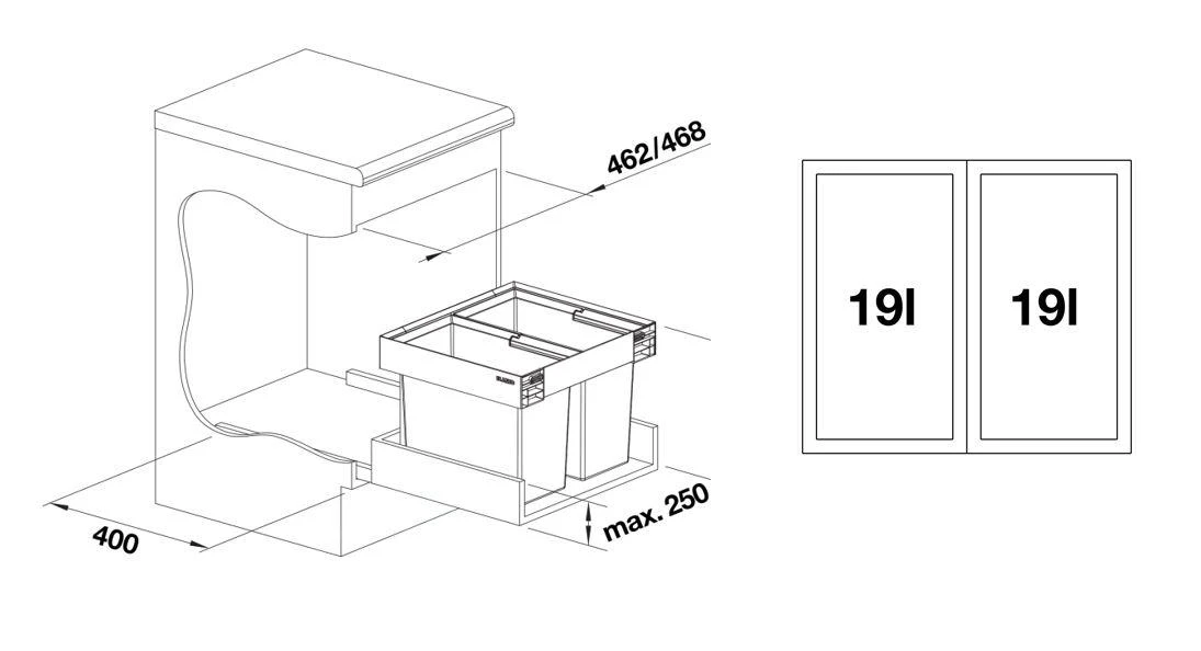 Inbouw afvalemmer Flexon II Low 50/2 l