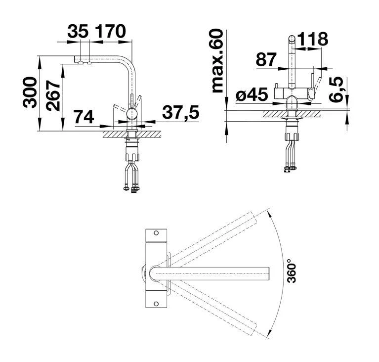 - afzonderlijke leidingen voor gefilterd en ongefilterd water
