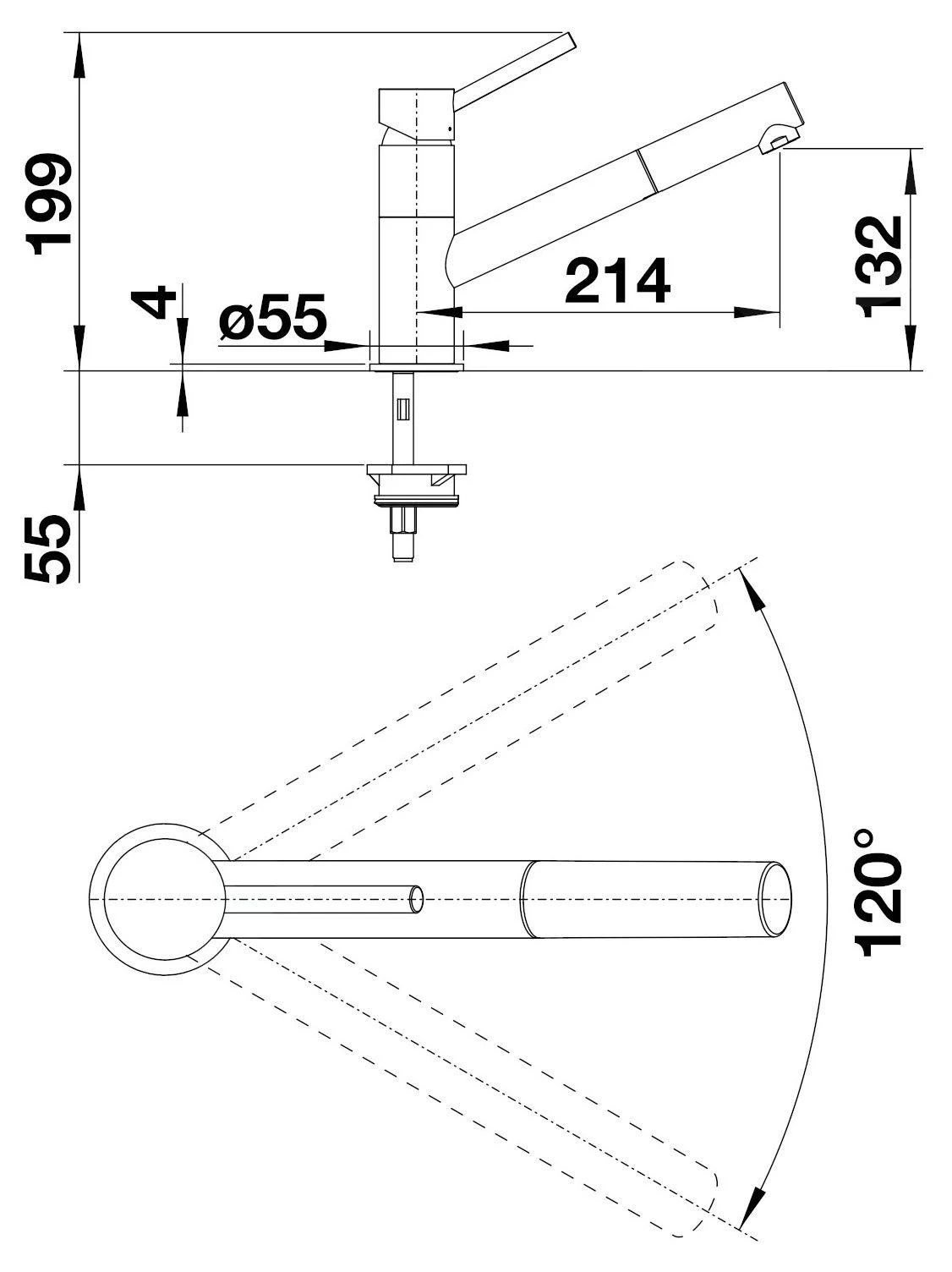 - draaibare uitloop, draaibereik 120°