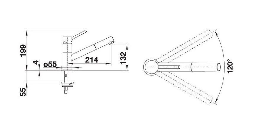 - draaibare uitloop, draaibereik 120°