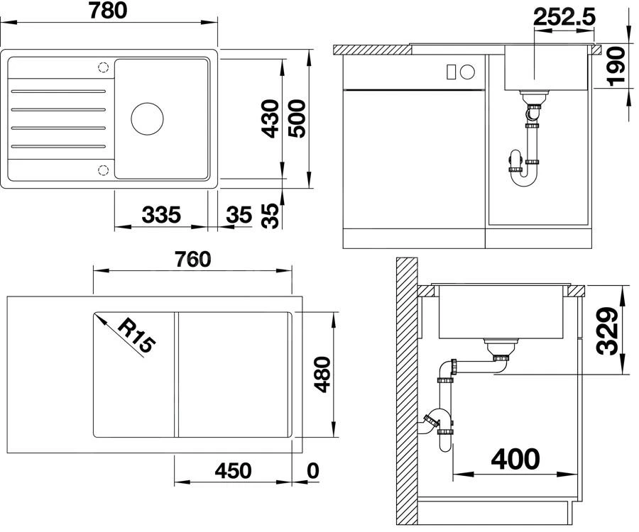 - afmetingen spoelbak 335 × 430 mm