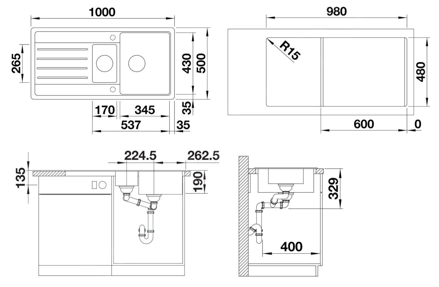 - enkelvoudige spoelbak met tray en afdruipgedeelte