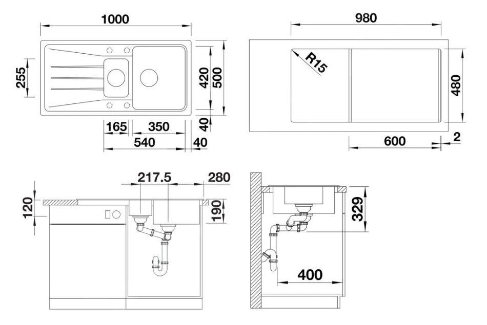 - zonder excentrische bediening, d.w.z. zonder bediening op afstand van de waste