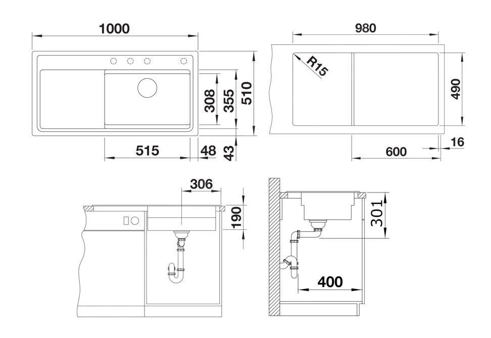 - enkelvoudige spoelbak met afdruipgedeelte links