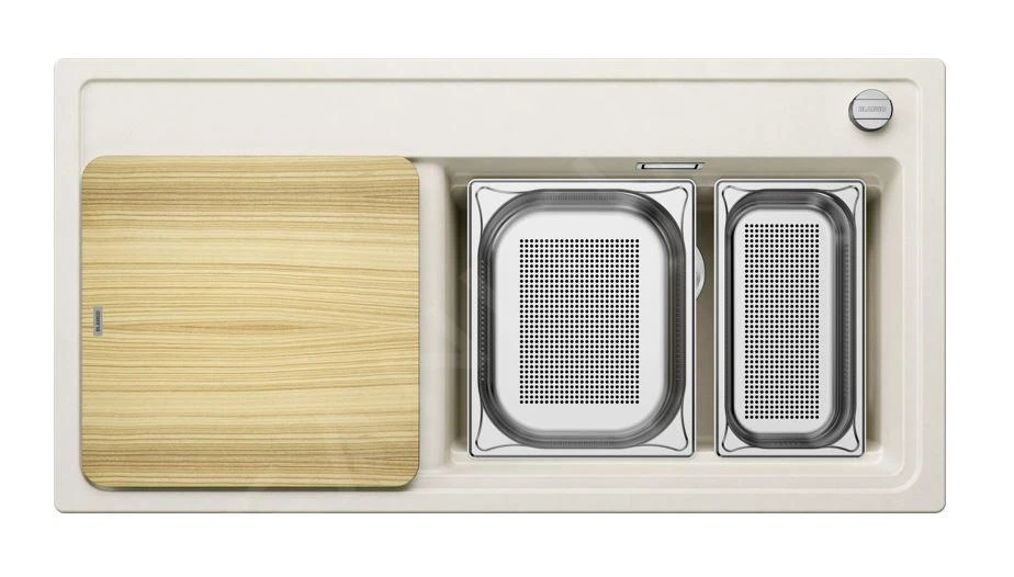 - spoelbak met meerdere niveaus voor het plaatsen van rails en inzetbakken
