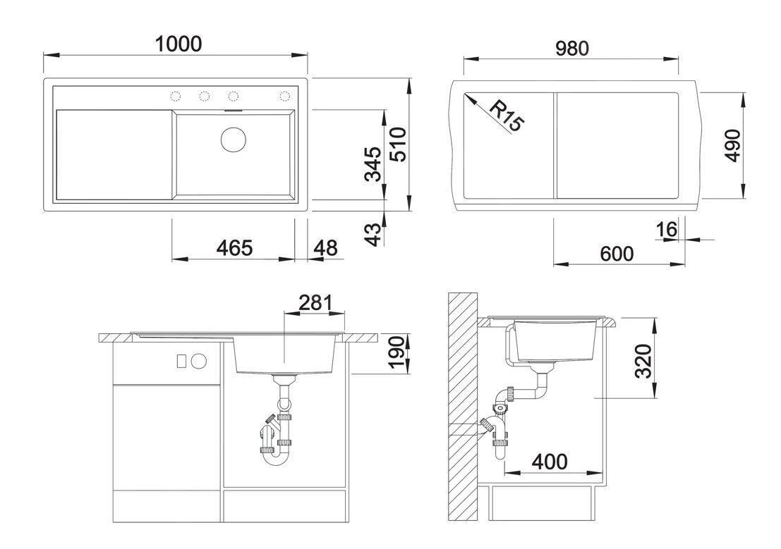 Spoelbak Zenar XL 6 S, met afdruipgedeelte links