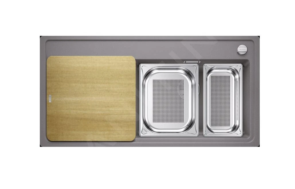 - rechts een extra grote spoelbak met geïntegreerde rand voor het ophangen van gastronormbakken