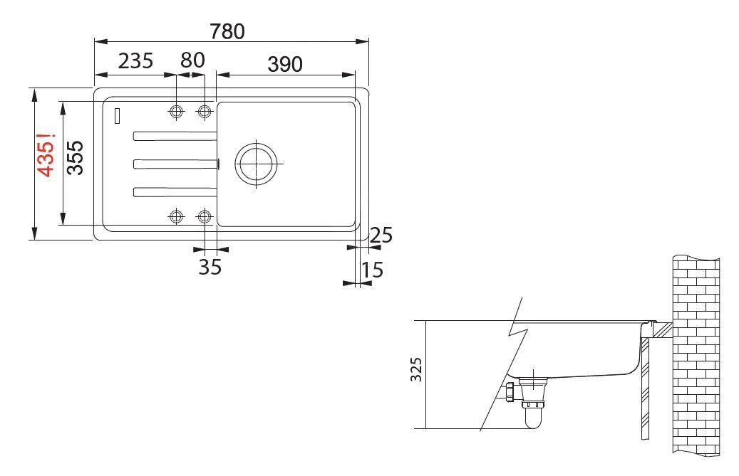 - afdruipgedeelte omkeerbaar – kan rechts en links worden geplaatst