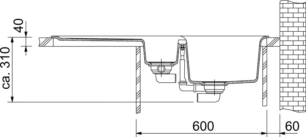 OID 651 tectonite spoelbak, met afdruipdeel, omkeerbaar