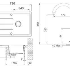 - ruimtebesparende sifon 6/4″ met aftakking voor vaatwasser