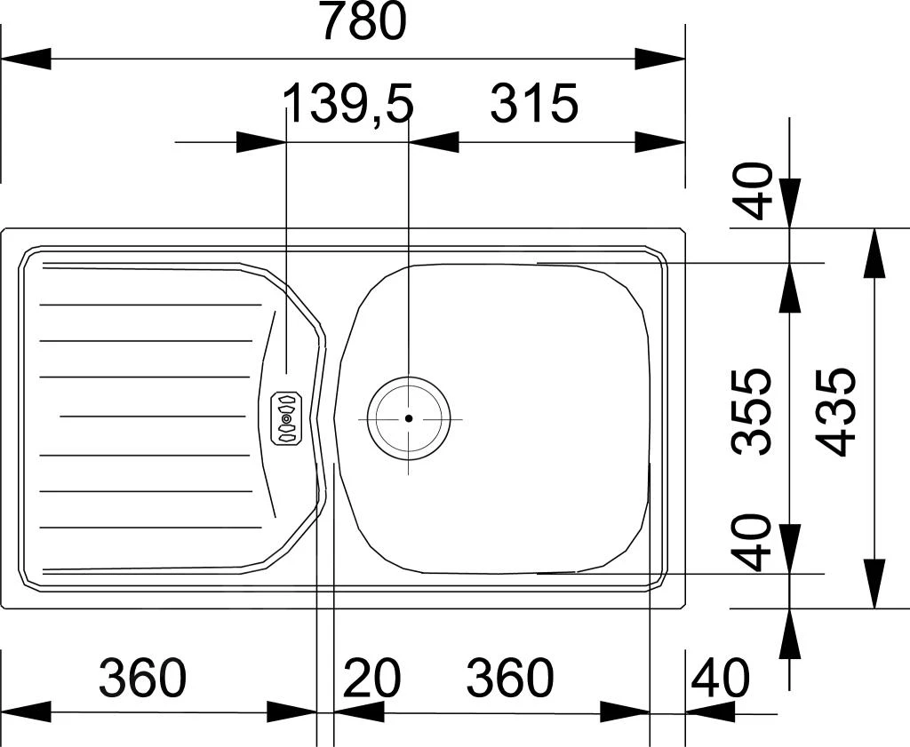 Spoelbak ETN 614 NOVA 6/4, omkeerbaar