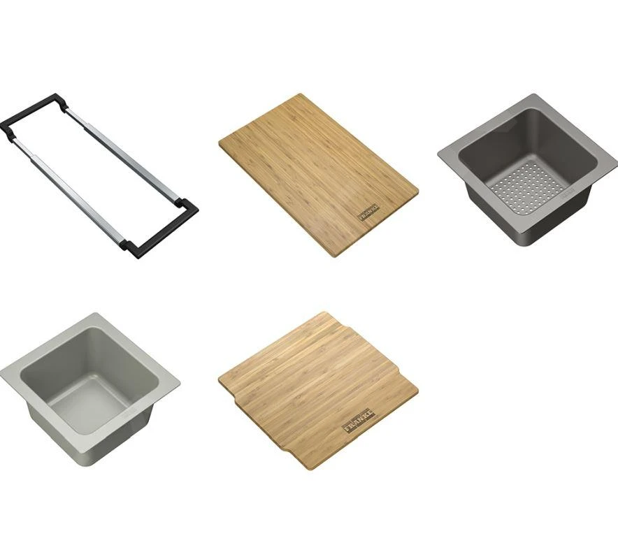 - 1x telescopische houder, kan worden aangepast aan de lengte/breedte van de spoelbak (afmeting tot 540 mm)