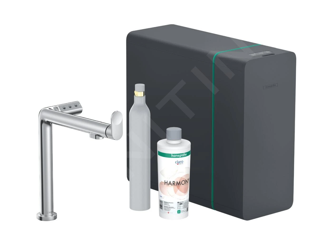 filterkop, mineraliseringskardoes Harmony en CO2-fles
