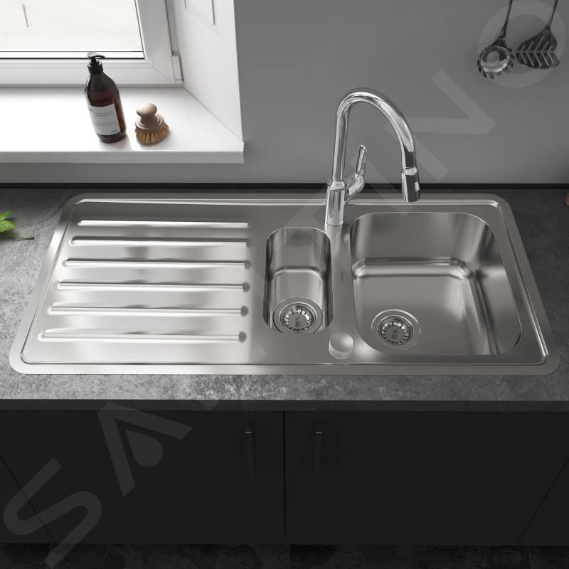 - aantal spoelbakken: 1 grote + 1 kleine spoelbak