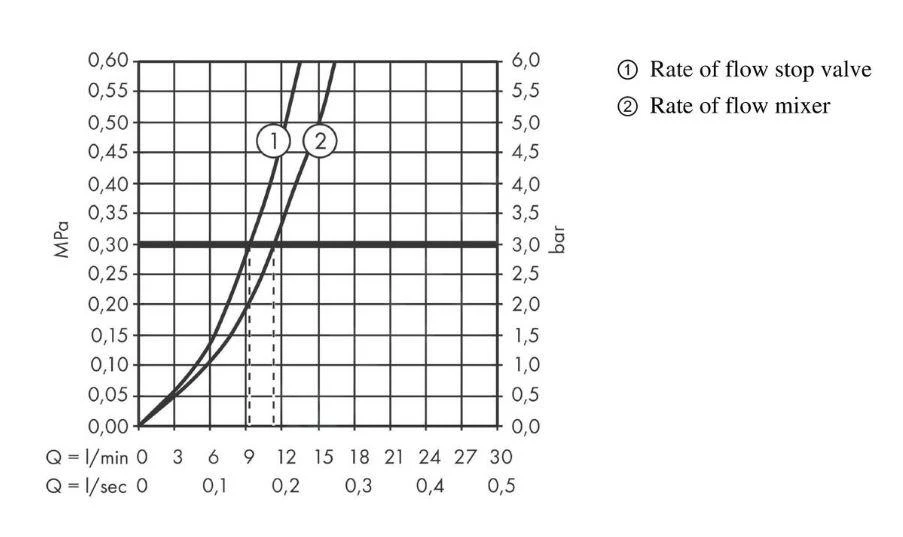 - max. doorstroming: 11,4 l/min (druk 3 bar)