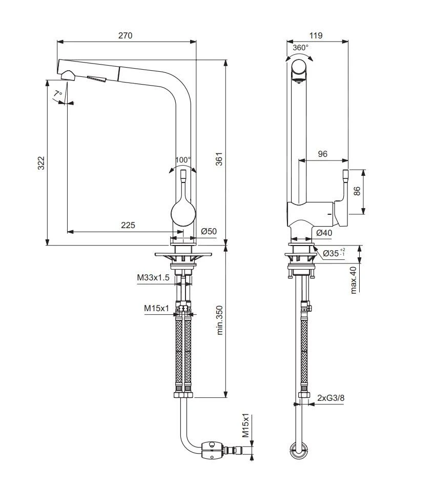 - flexibele slang PEX G3/8