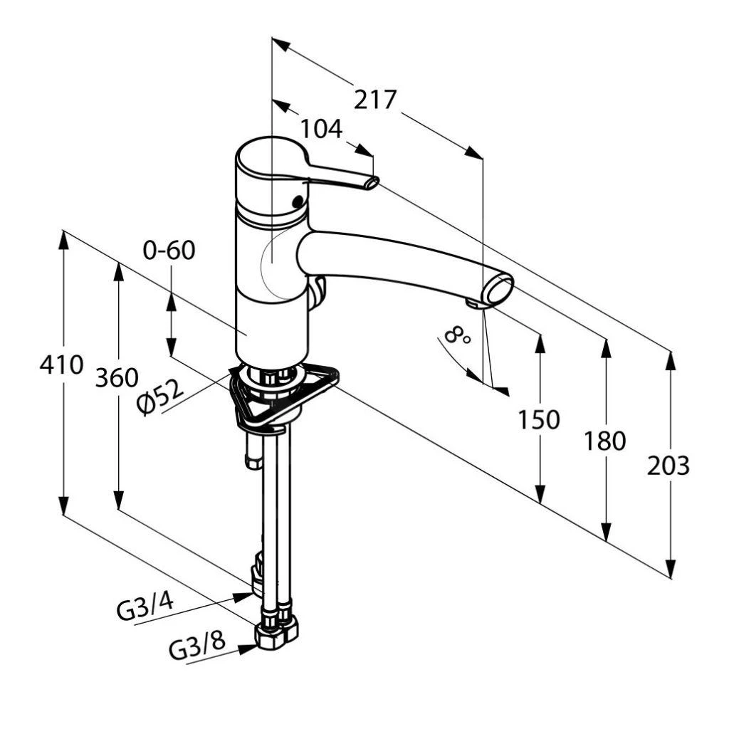 - flexibele aansluitingen G 3/8