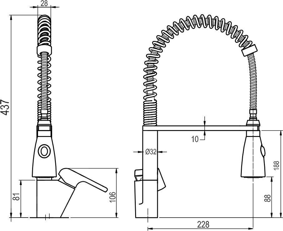 - draaibare uitloop met veer en omstelling vuistdouche/gewone straal