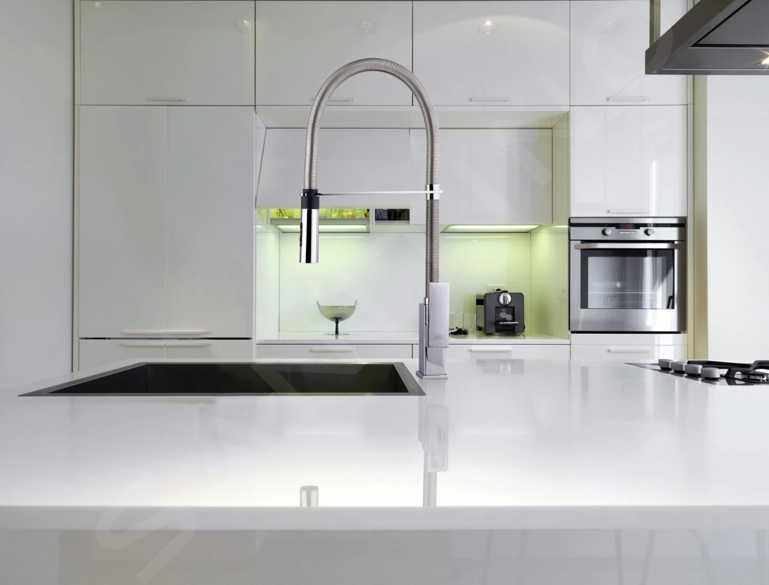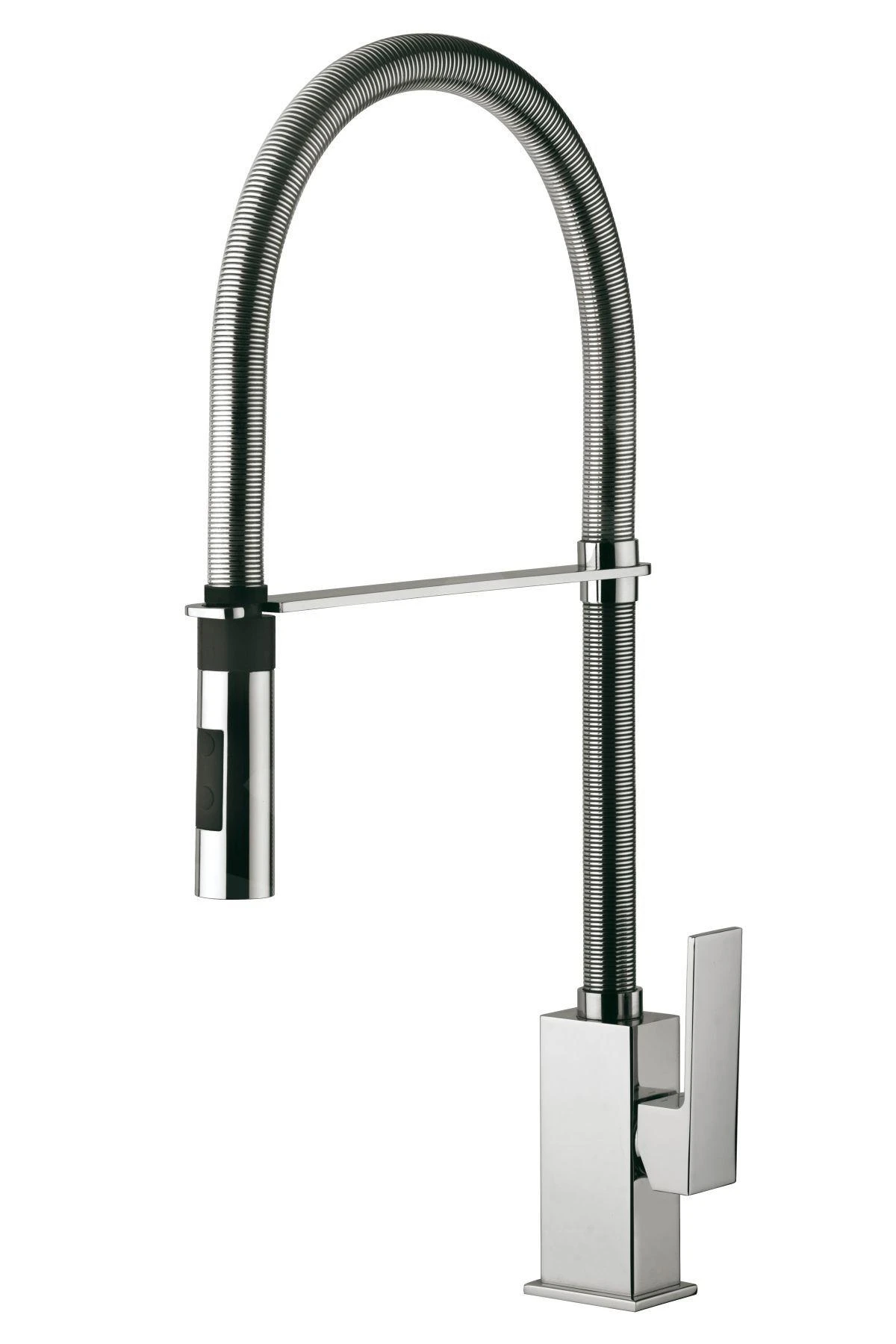 Staande eengreeps keukenkraan met uittrekbare handdouche met twee straalsoorten