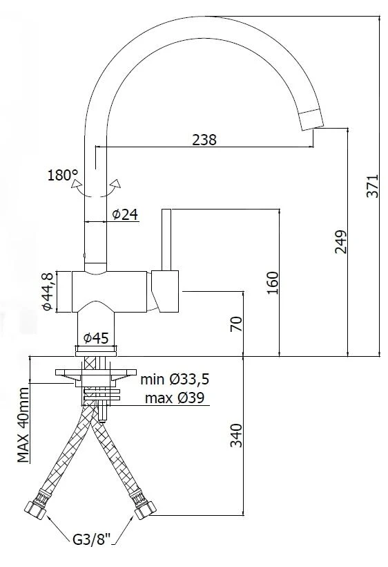 - kraanhoogte 371 mm